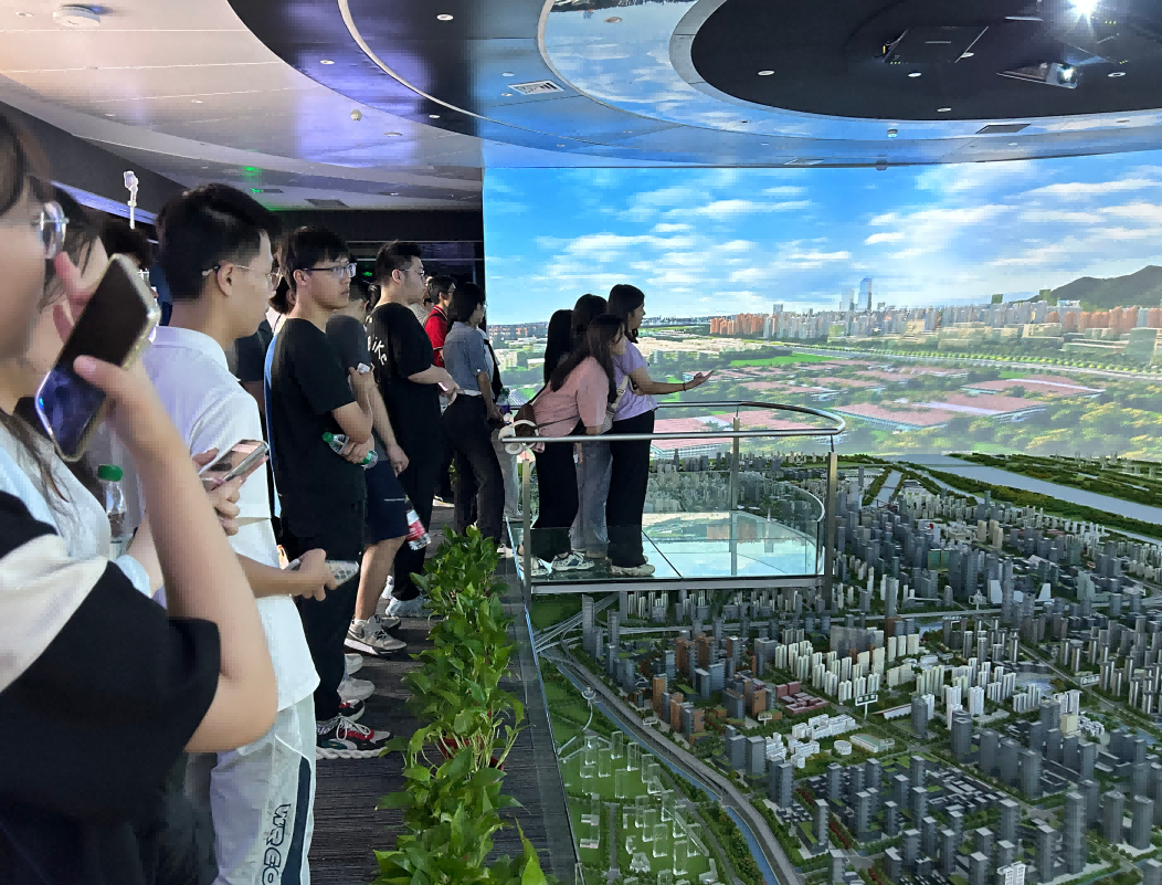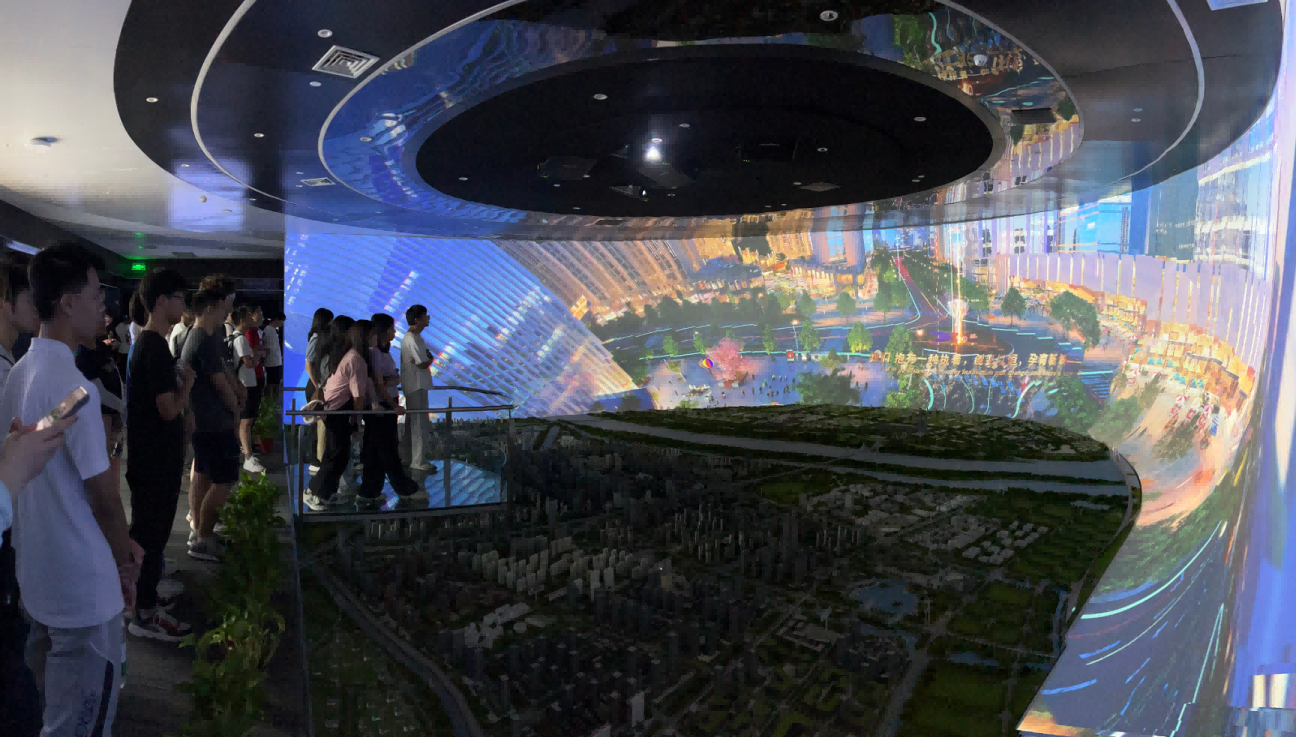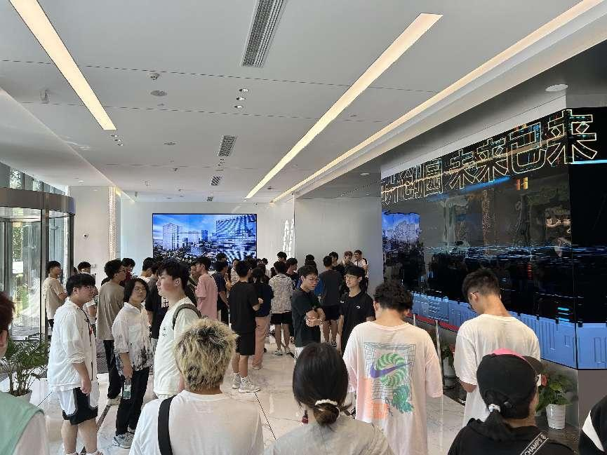 园区内现代建筑群错落有致,每一砖一瓦都蕴含着创新和科技的基因。南宫NG28科技IT菁英暑期实训营的学员们怀揣着对科技的无限憧憬步入研创园展厅。展厅内部设计充满科技感,一块块巨大的模型和显示屏映入眼帘,生动展现了研创园的科技规划,以及从梦想走向现实的开展历程。